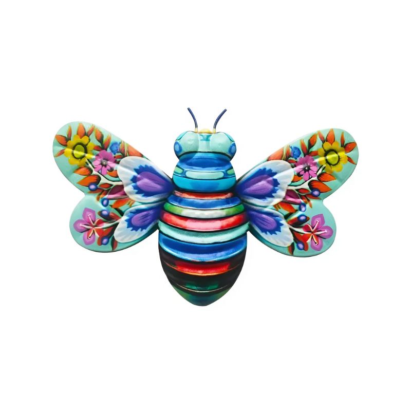 Enhance your space with this sturdy, hand-painted metal bee wall decor. The vibrant colors and intricate details make it perfect for any indoor or outdoor area.